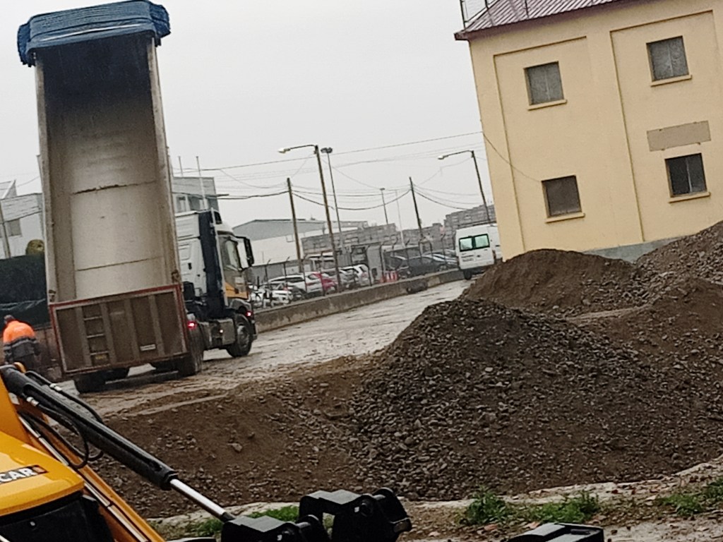 Camions i una retroexcavadora estan tapant, avui 9 de febrer de 2024, el forat de la vergonya. Un profund clot que va quedar a l’enderrocar la sitja dels anteriors graners del Sempa al carrer Narcís Monturiol de Pardinyes.