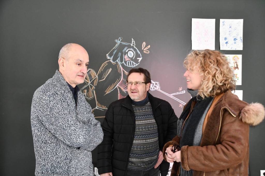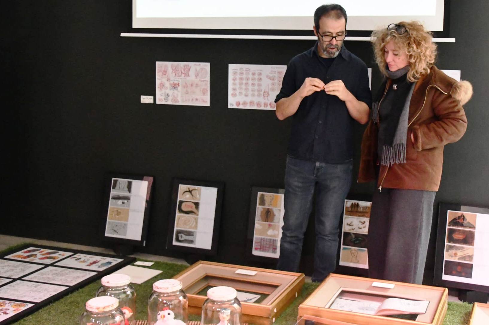 Pilar Bosch i Vilana, regidora de Cultura, Consum i Promoció de la Ciutat i i Joan Bosch, del col·lectiu de fotografia, dibuix, pintura i escultura han visitat la mostra que ha estat explicada pel director del Centre i per Carles Porta, professor dels estudis d’il·lustració i animació.