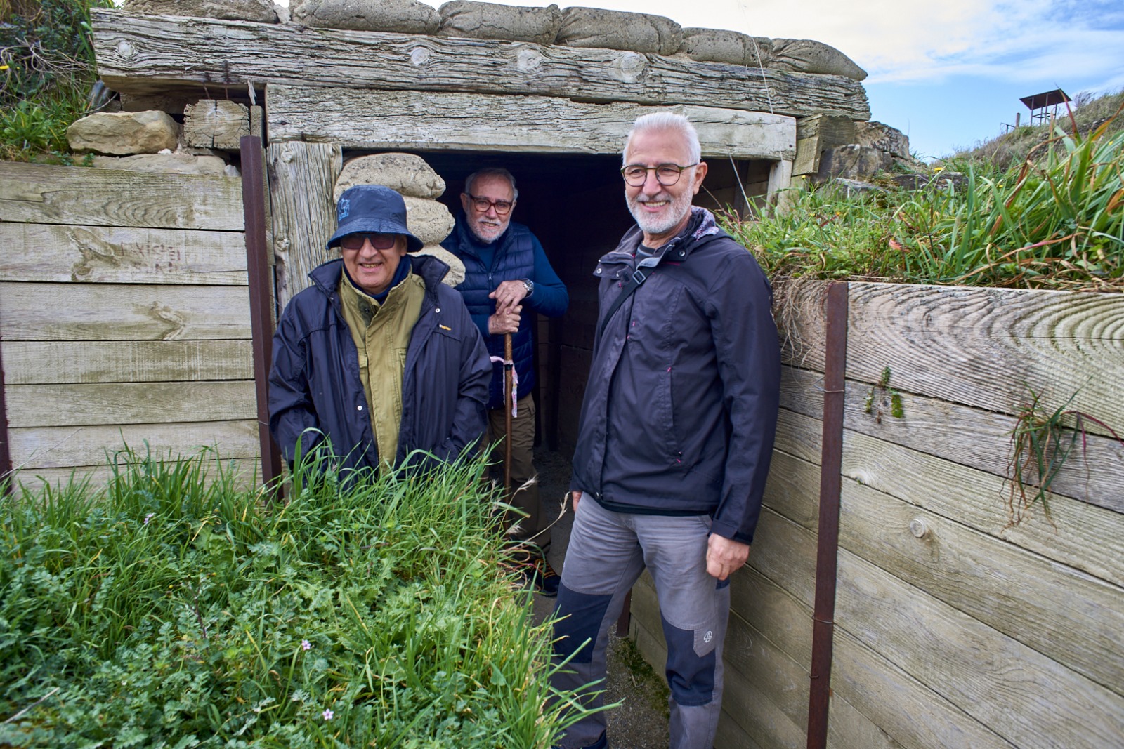 Van d’entrar en els ramals de comunicació en zig-zag. Unes rases ondulades i protegits per simulats sacs terres, que tenen entre 0,70 i 1,70 de profunditat. Van continuar el recorregut que no arriba al kilòmetre, circumval·lant tota la muntanya. Aquest estret itinerari, protegit amb fustes, té diferents túnels i també destaquen els aguaits que tenia la tropa per divisar els atacants i encara estan ben conservats els nius de metralladora.