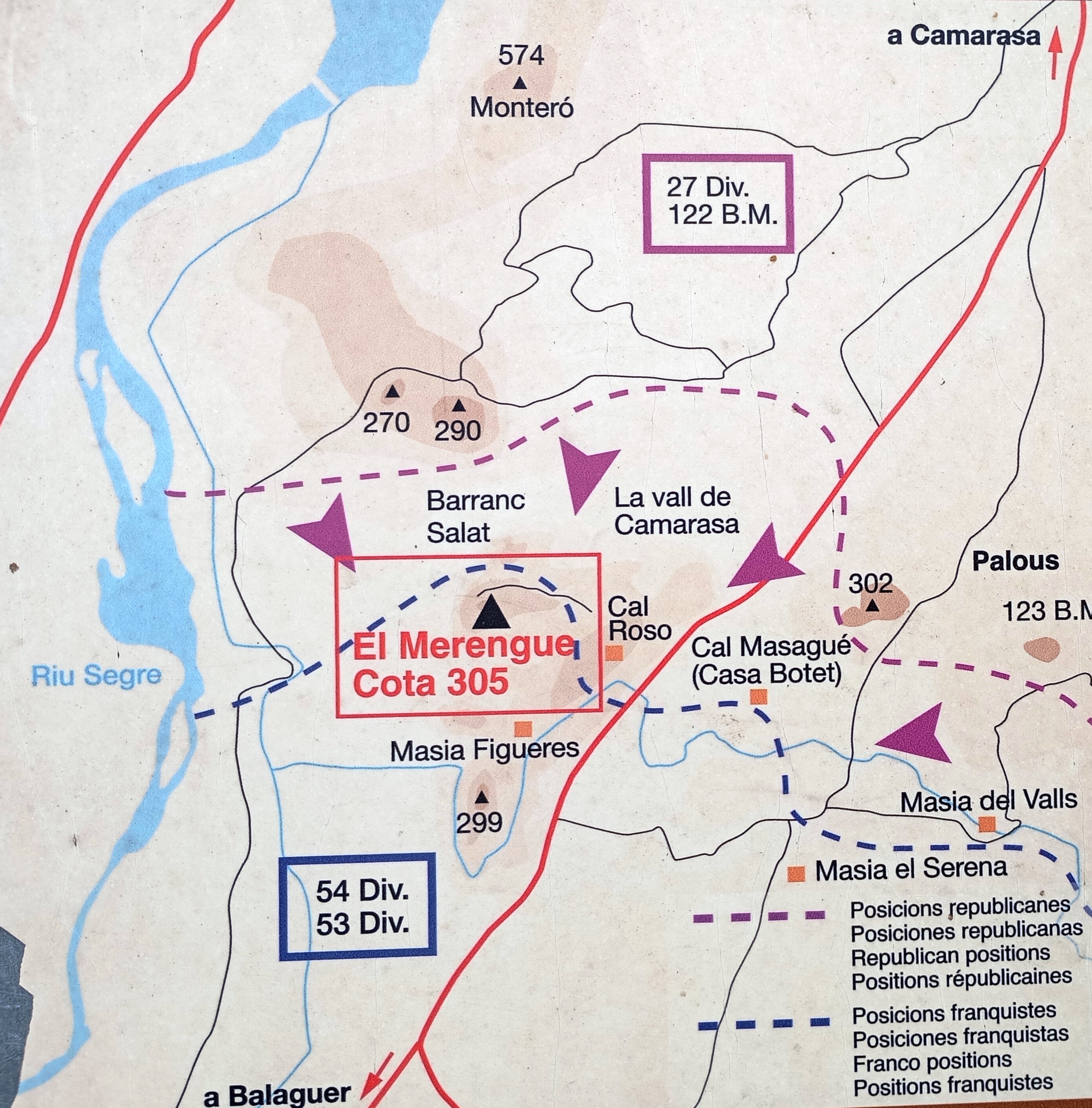 El nom del merengue prové degut que l’oficial republicà, el capità Cabrera, animà als seus soldats a l’atac amb les paraules “Vinga nois, que això ens ho menjarem com si fos un ‘merengue’’.