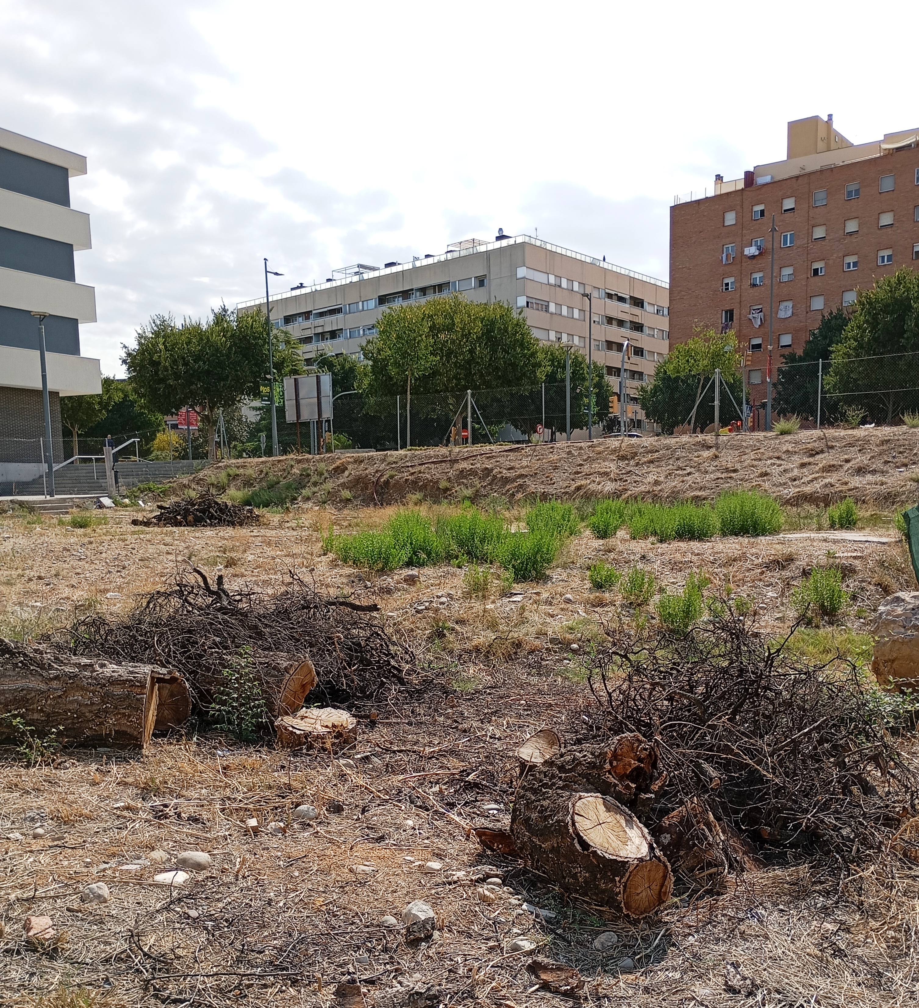 Els cèrcols destinats a l’arrelament de les flors, plantades en els forats dels arbres pels membres d’Escocells en la plaça del davant d’Orvepard de Pardinyes, pateixen set extrema que sols la calmen transportant aigua de les cases particulars o bé d’altres fons llunyanes del barri per poder regar les flors.
