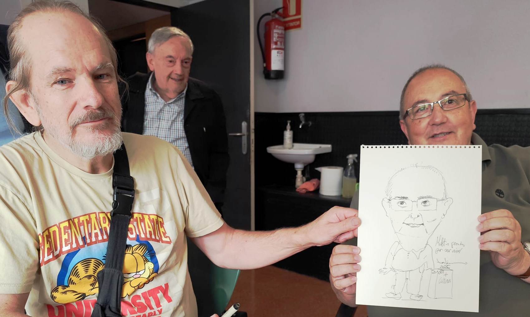 Gelonch ha coincidit durant la reunió amb el professor, geòleg i astrònom, Juli Vallory (jubilat amb càmeres) amb qui han recordat que van fer la comunió junts; també amb el dibuixant, pintor i escultor, Rafa Borlansa, qui l’ha fet una caricatura, en directe i amb d’altres diferents artistes amics i coneguts d’Arts i Cultura.