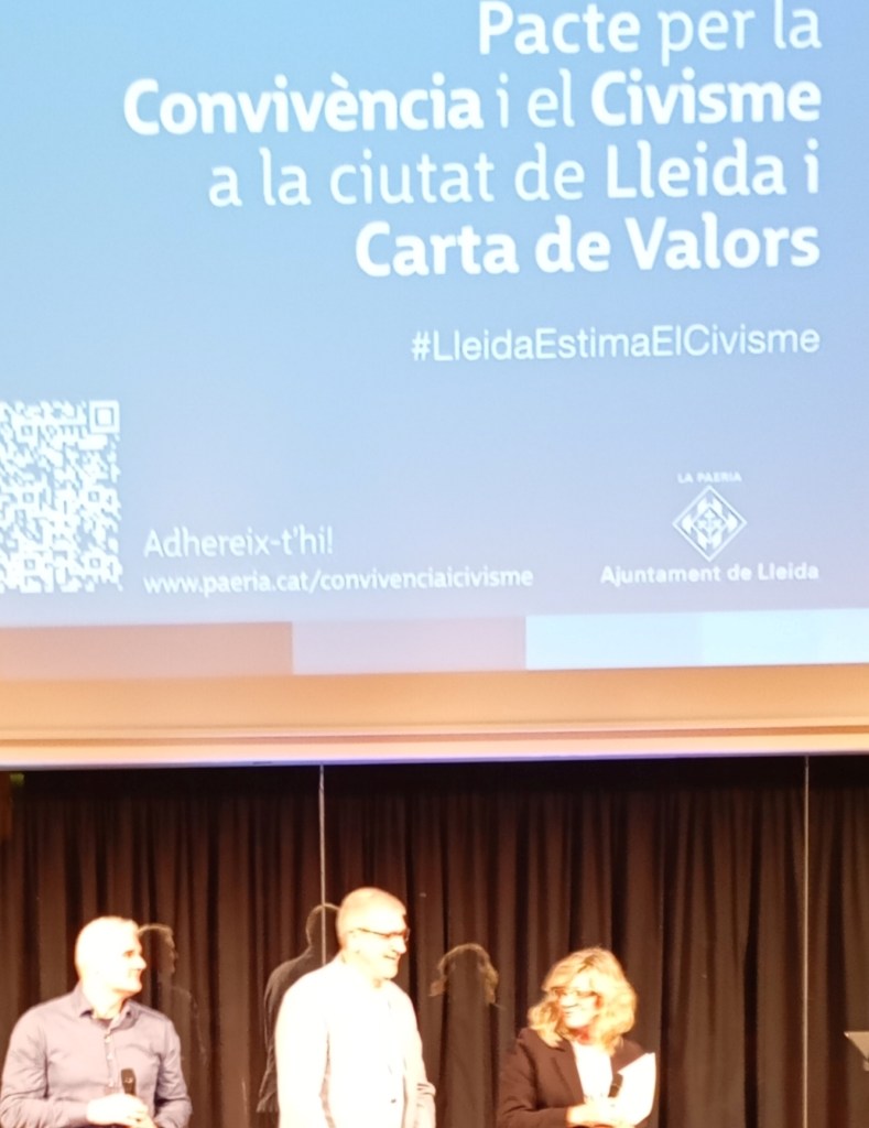 El Pacte per la Convivència, presentat a la ciutadania per la tinent d’alcalde Cristina Morón, és un compromís públic obert als 153.000 habitants de Lleida per avançar amb civisme, respecte i pau social, segons l’alcalde Félix Larrosa i té com a base 7 Valors inclosos en la Carta en Comú basats en el Respecte, la Convivència activa, la Sostenibilitat, la Inclusió, l’Acollida, la Generositat i la Solidaritat.