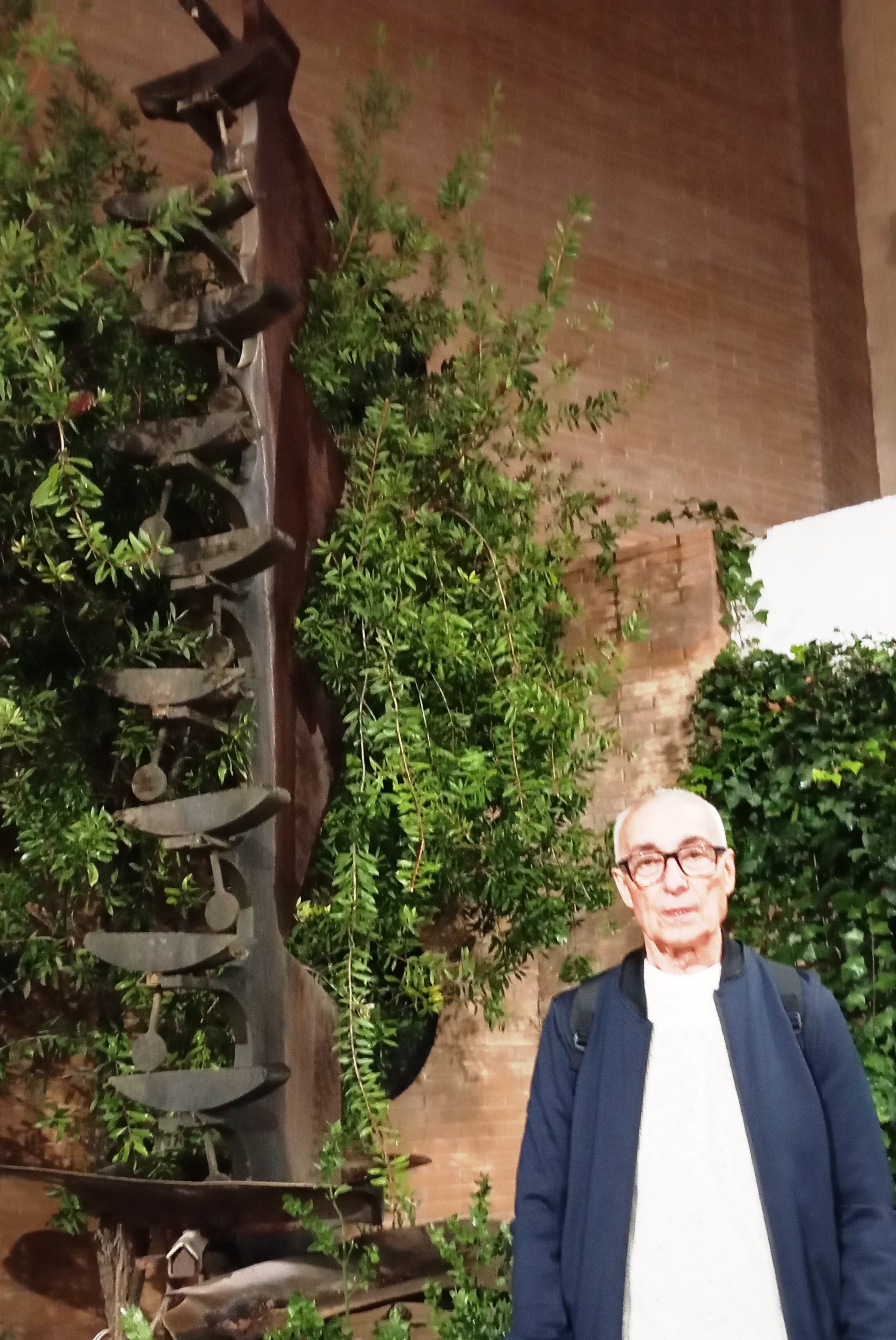 Llorenç Martí (Almacelles 1960), dibuixant, gravador, pintor, escultor i compositor) qui ha vingut de nou a Pardinyes per participar en l’assemblea convocada pels Amics de la Foto de Lleida i al mateix temps per visitar i repassar la seva obra escultòrica “Poesia Cinètica” instal·lada en el cor d’Orvepard, al pati interior del Centre Cívic de Pardinyes.
