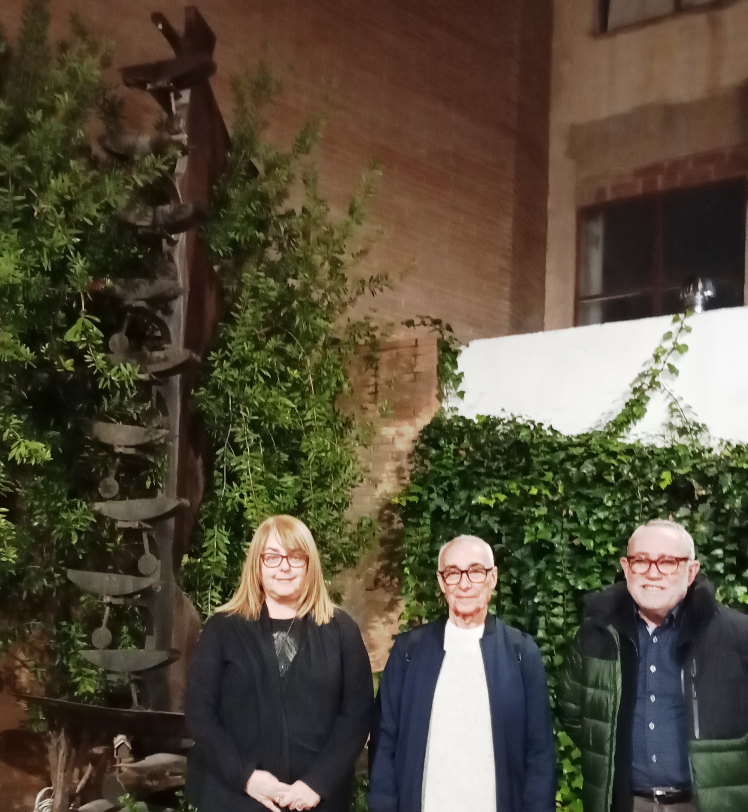 El polifacètic artista va aprofitar l’ocasió d’estar a Pardinyes per resseguir la seva escultura creada a finals dels anys noranta i també per saludar al president d’Orvepard, Ismael Ruíz i a la presidenta de la Comissió de Cultura, Jordina Cervera.