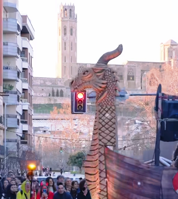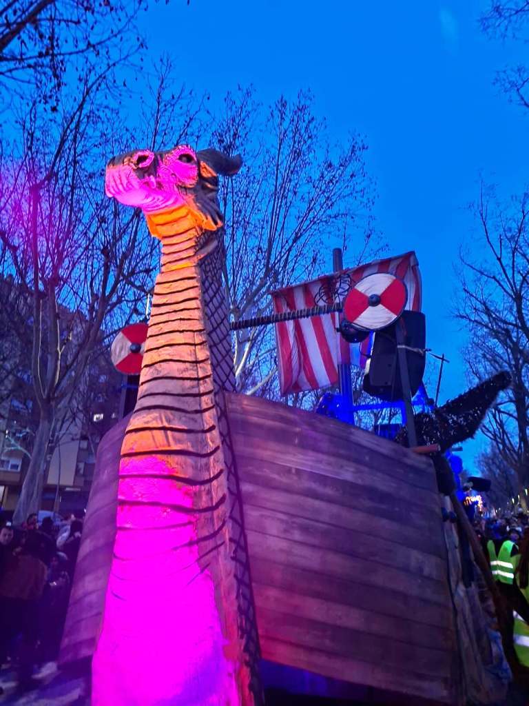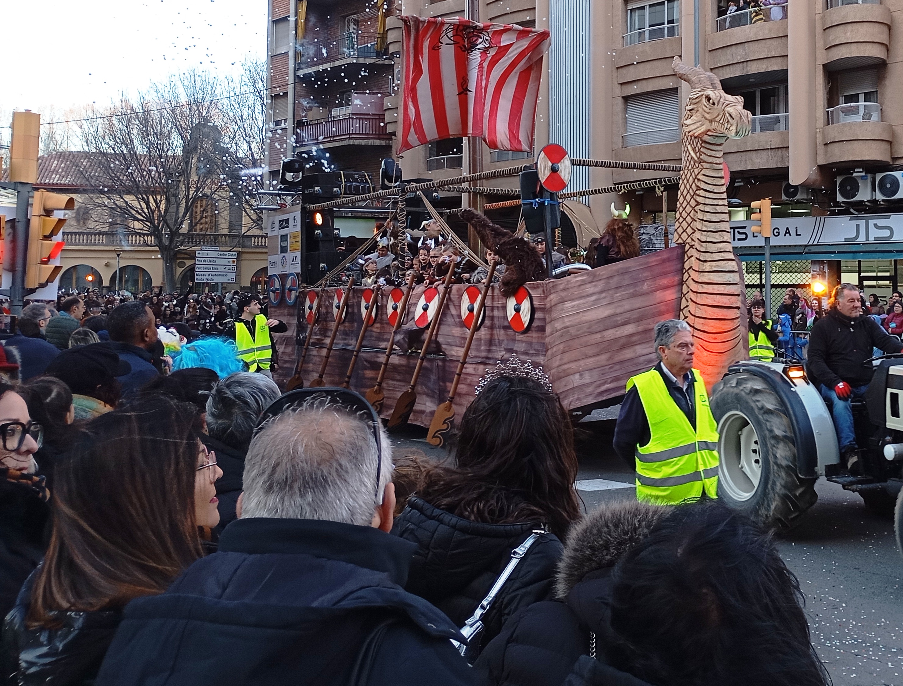 Un drakar, vaixell àgil i veloç d’estil nòrdic guiat per 351 vikings (91, d’ells nens i nenes) van sortir de la part alta de les comportes de Pardinyes, riu avall, seguint la ruta dels Segre, arribant als Camps Elisis, passant per santa Cecília, l’avinguda de les Garrigues fins enllaçar amb l’avinguda de doctora Castells de Cappont, causant una inusitada expectació i molta curiositat entre el nombrós públic assistent a la rua de Carnaval de Lleida en la que van participar 39 carrosses d’arreu, dissabte 14 de febrer de 2026.